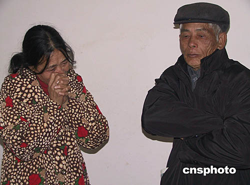 一月十九日,福建平潭十九歲勞工魏武在伊拉克被武裝分子綁架,其母薛金嬌(圖左)在接受記者采訪時希望中國政府能盡快救出其子。圖為當(dāng)?shù)乩先嗽谖杭覄裎恳恢笨奁难饗伞W髡?王東明