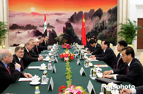 圖:曾慶紅與伊拉克臨時政府副總統(tǒng)沙維斯舉行會談