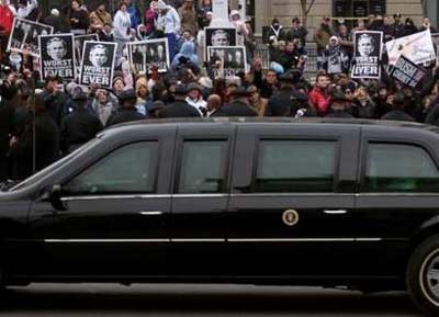 對(duì)于就職典禮,反布什人士各出其謀:有人選擇放大假遠(yuǎn)走高飛,見(jiàn)不到就職典禮,眼目清凈;也有人選擇成群結(jié)隊(duì)涌入華盛頓,計(jì)劃當(dāng)布什的車(chē)隊(duì)經(jīng)過(guò)賓夕法尼亞大道時(shí),集體轉(zhuǎn)身背對(duì)車(chē)隊(duì),給布什作出“象征式”的反對(duì)。