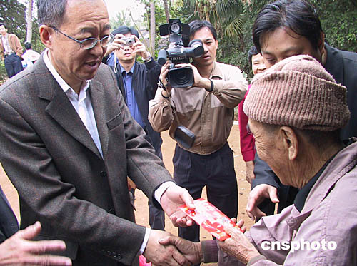 中新社東方一月二十日電(記者顧時宏)海南的東方華僑農(nóng)場今天陽光明媚,當(dāng)九十二歲的越南老歸僑葉氏阿婆,從國務(wù)院僑辦副主任劉澤彭手中接過春節(jié)慰問紅包時,她激動地用廣東話說:“多謝!多謝政府的關(guān)心!”