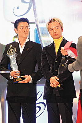 克勤飲恨“勁歌”的“最受歡迎男歌手”獎(jiǎng)項(xiàng),敗在華仔手下,然而前晚在“十大中文金曲頒獎(jiǎng)音樂(lè)會(huì)”上奪得“最優(yōu)秀男歌手”,稍勝華仔一仗,不過(guò)他覺(jué)得跟華仔事業(yè)相比仍有大段距離。05年會(huì)聽從華仔意見積極推出國(guó)語(yǔ)碟,不僅局限于香港市場(chǎng),內(nèi)地市場(chǎng)還有大片天空,他會(huì)以華仔為目標(biāo)。而今次得到“全國(guó)最受歡迎男歌手”銅獎(jiǎng),對(duì)他而言意義重大。