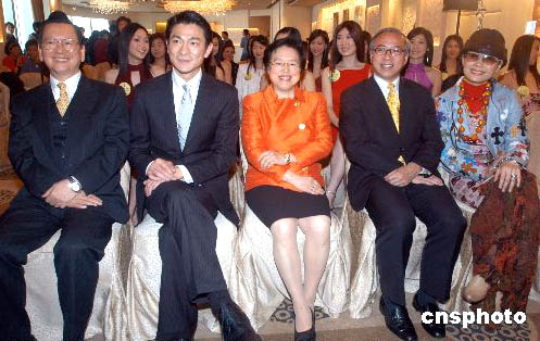 2005年度國(guó)際華裔小姐競(jìng)選大會(huì)評(píng)判由陳有慶博士、歌影紅星劉德華、譚惠珠太平紳士、胡經(jīng)昌太平紳士及影星葉童(左起)擔(dān)任。