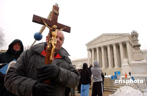 2005年1月24日,數(shù)萬民眾聚集在美國(guó)首都華盛頓最高法院前,舉行聲勢(shì)浩大的“反墮胎”游行,呼吁全面禁止墮胎,布什總統(tǒng)對(duì)此表示支持。Ic/cnsphoto 攝