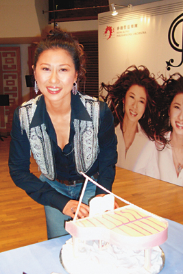 中新網(wǎng)1月26日電 據(jù)文匯報報道,葉倩文與香港管弦樂團(tuán)將于三月十七至十九日假紅館舉行“港樂.葉蒨文Live”演唱會,昨日特地在香港文化中心音樂廳舉行招待會。現(xiàn)場有切蛋糕吹蠟燭儀式,期間有枝蠟燭突然火光猛烈,Sally連忙俯低身吹熄,卻不料春光乍泄。