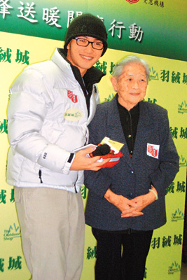 中新網(wǎng)1月27日電 據(jù)大公報(bào)報(bào)道,謝霆鋒昨日到救世軍出席“送暖關(guān)懷行動(dòng)”,向長(zhǎng)者送羽絨。期間有位婆婆被感動(dòng)得落淚,霆鋒即時(shí)上前安慰,也有婆婆大贊霆鋒有爸爸謝賢的俊朗,又贊其有善心,祝他長(zhǎng)命百歲,場(chǎng)面溫馨。