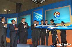中國民航史上最大的一筆訂單二十八日在華盛頓簽訂,中國國航、東航、南航、海南航空、廈門航空、上海航空六家航空公司將進(jìn)口價值七十二億美元的六十架最新型波音787飛機(jī)。這批飛機(jī)將從二00八年開始陸續(xù)交付使用。
