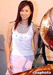 2004年度香港小姐亞軍朱慧敏小姐,日前參加香港女童軍總會(huì)的攪珠頒獎(jiǎng)儀式,為活動(dòng)造勢(shì)。