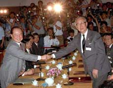 汪道涵表示,辜振甫先生逝世一個月來,兩岸同胞對他尊重“九二共識”的立場和為兩岸關(guān)系發(fā)展作出的貢獻給予高度評價,我個人也沉浸在對老友的緬懷之中,很想親赴靈前祭奠,但因年事已高,力不從心。我愿請參與過汪辜會談、多次見過辜先生的孫亞夫、李亞飛兩位先生,作為我個人的代表,接受辜振甫先生家屬的邀請,赴臺北專程進行吊唁,以再度表達對老友的敬意和追憶之情。我期盼他們能夠在辜先生家屬的安排下,順利完成我的心愿。