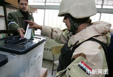 圖:伊拉克士兵在巴格達參加投票