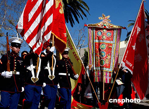 美國(guó)海軍陸戰(zhàn)隊(duì)護(hù)旗兵入場(chǎng)助威