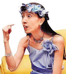 好一陣子沒上通告的許純美雖然最近造型越來越多變,但阿美姊重排場的個性仍然與過去沒兩樣,在參加某一節(jié)目錄像時,她事先特別叮囑主持人NONO,在邀請她上臺時要隆重介紹才行,就像是歡迎奧斯卡影后一般,結(jié)果當NONO還在說:“我們今天的特別來賓是個了不起的人物...”阿美姊自己就如名模走秀般扭上臺,不讓小S與劉真專美于前,還拉起NONO的手現(xiàn)場跳了一段恰恰,舞姿就像是她的招牌拍照pose一樣驚人。
