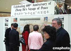 華人舉辦“慶祝鄭和和平之旅六百周年”紀(jì)念展,向美國主流社會介紹鄭和下西洋及中國歷史文化。作者:余東暉