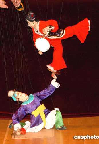 當(dāng)?shù)貢r(shí)間二月七日晚,曾在全球四十多個(gè)國(guó)家演出過(guò)四千多場(chǎng)的中國(guó)福建泉州木偶劇團(tuán)在聯(lián)合國(guó)總部舉行的中國(guó)春節(jié)文藝晚會(huì)上進(jìn)行專場(chǎng)演出。演出結(jié)束后,畫家出身的聯(lián)合國(guó)秘書長(zhǎng)安南夫人南.安南興致勃勃地來(lái)到后臺(tái)向演員了解木偶戲演出技巧。作者:龔文謨