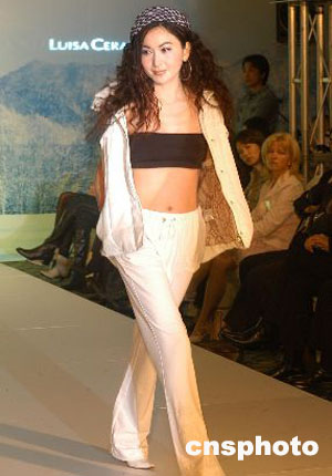藝人溫碧霞2月14日在香港為德國兩大著名時(shí)裝品牌Hauber & Luisa Cerano 05秋冬時(shí)裝匯演客串模特,溫碧霞為時(shí)裝品牌Luisa Cerano展示05秋冬時(shí)裝。 作者:鄧慶樂