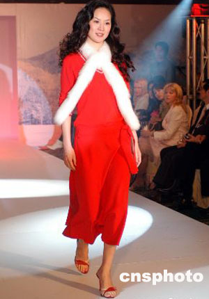 影視紅星任葆琳2月14日在香港為德國(guó)兩大著名時(shí)裝品牌Hauber & Luisa Cerano 05秋冬時(shí)裝匯演客串模特,任葆琳為時(shí)裝品牌Hauber展示05秋冬時(shí)裝。作者:鄧慶樂(lè)