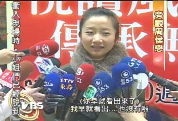 中新網(wǎng)2月19日電 據(jù)TVBS報(bào)道,周侯戀不是新聞嗎?其實(shí)在娛樂圈早有傳聞,主持娛樂相當(dāng)有功力的陶晶瑩,就曾經(jīng)在節(jié)目中逼侯佩岑發(fā)誓不會(huì)跟周杰倫在一起,因?yàn)橹芎顟僭缬卸四,她說早就看出不尋常了,至于周杰倫是否劈腿,陶晶瑩則是賣了關(guān)子,沒有明說。