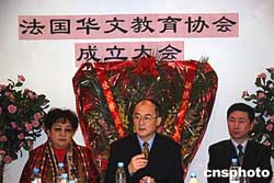 由法國從事華文教育的各界人士組織的法國華文教育協(xié)會,二月十九日在巴黎成立。圖為國務院僑辦副主任趙陽(中)在成立大會上致辭。作者:鐘誠
