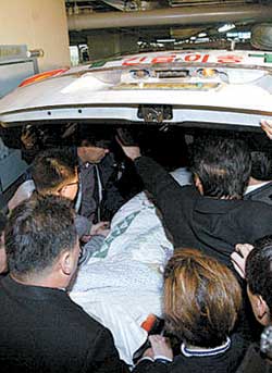 根據(jù)警方調(diào)查,李恩珠有兩次自殺行為。因?yàn)樵诶疃髦榈氖w上發(fā)現(xiàn)李恩珠的左手腕處有刀傷痕跡,而且床單中有大量血跡。因此警方判斷有可能是李恩珠在用刀自殺未成之后才用腰帶上吊自殺。目前李恩珠的遺體已被送往醫(yī)院進(jìn)行尸檢。