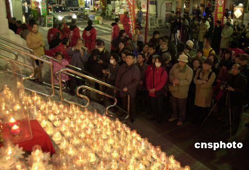 在橫濱中華街關(guān)帝廟前,當(dāng)?shù)厝A人華僑正在舉行獨(dú)具特色的“元宵祭燈籠祭”:用蠟燭配上蓮花底座,做成一盞盞祥和溫馨的“祈福蓮花燈”,再在外面罩上用彩筆寫上“招財(cái)進(jìn)寶”、“平安祈!,“合和美滿”、“生意興隆”,以至“世界和平”等祈愿字樣的透明燈罩,整齊地?cái)[放在廟前的臺(tái)階上。在近千盞帶有眾人心愿的蓮花彩燈映襯下,平日肅穆的關(guān)帝廟此時(shí)也顯得溫情脈脈,一派祥和。
