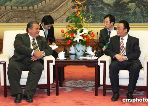 中國全國人大常委會委員長吳邦國二月二十五日在北京人民大會堂會見來訪的拉美議會議長洛佩斯。作者:毛建軍