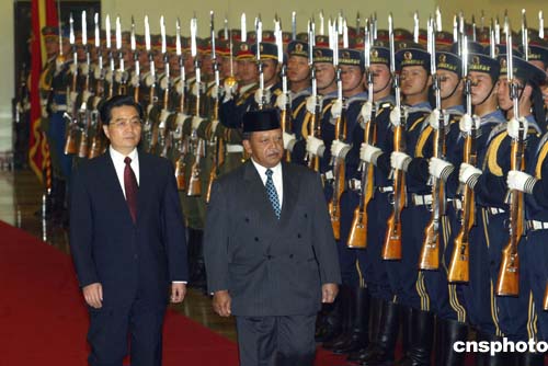 中國國家主席胡錦濤二月二十八日在北京人民大會堂會見來訪的馬來西亞最高元首西拉杰丁。作者:史利