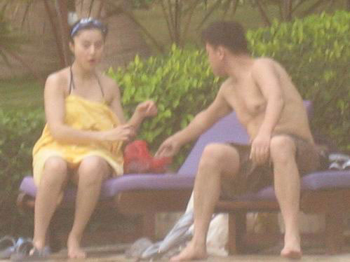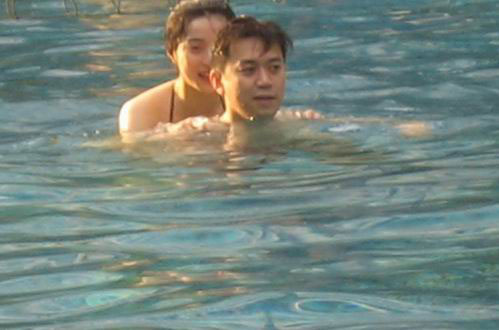 王學(xué)兵于范冰冰現(xiàn)現(xiàn)身海南三亞銀泰獨(dú)家酒店的室外游泳池,隨行的還有一男一女兩位友人。此時(shí)泳池的游客比較稀少,范冰冰毫不吝惜身材,身穿性感的黃色兩件套比基尼入水,而一向缺乏時(shí)尚觸覺(jué)的王學(xué)兵則沒(méi)有選擇正規(guī)游泳褲,而是穿著深灰色沙灘褲便與范冰冰在水中展開(kāi)嬉戲。除了酒店房間提供的沙灘毛巾外,兩人還另外租借了一張用以休息的水上氣墊床。