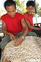 在有著濃濃的印尼民族風(fēng)情的巴厘島民族村,處處都留下了鄭和下西洋深深的印跡。中國(guó)的藤編工藝也在巴厘島民族村頗受當(dāng)?shù)啬贻p人青睞。據(jù)當(dāng)?shù)毓そ硞兘榻B,中國(guó)的藤編工藝技術(shù)也是當(dāng)年鄭和下西洋時(shí)傳授給當(dāng)?shù)氐摹W髡?蔣振江