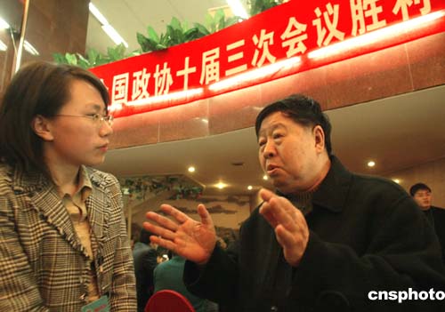 滿臉笑意的相聲演員馬季出現(xiàn)在簽到臺(tái)前時(shí),給已經(jīng)恭候一天的工作人員帶來(lái)了歡樂(lè)。簽名、拍照,他來(lái)者不拒。問(wèn)他此次帶來(lái)了什么提案,他謙虛地說(shuō):“我向大家討招兒來(lái)了!