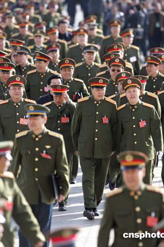 圖:解放軍代表出席人大三次會(huì)議預(yù)備會(huì)