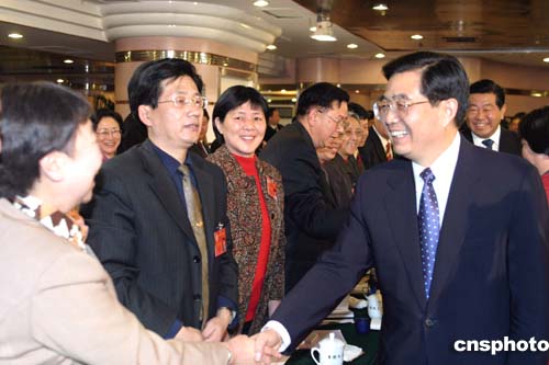 中新社北京三月四日電 中共中央總書記、國家主席、中央軍委主席胡錦濤今天下午看望了參加全國政協(xié)十屆三次會議民革、臺盟、臺聯(lián)界委員,并參加聯(lián)組會,聽取委員們的意見和建議。他強調(diào),我們要堅持以鄧小平理論和“三個代表”重要思想為指導,繼續(xù)貫徹“和平統(tǒng)一、一國兩制”的基本方針和現(xiàn)階段發(fā)展兩岸關系、推進祖國和平統(tǒng)一進程的八項主張,繼續(xù)以最大的誠意、盡最大的努力爭取和平統(tǒng)一的前景,同時絕不容忍“臺獨”,絕不允許“臺獨”分裂勢力以任何名義、任何方式把臺灣從祖國分割出去。