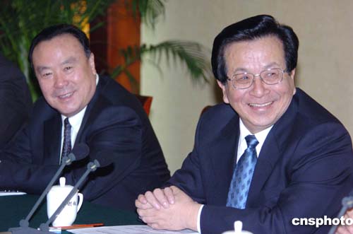 中共中央政治局常委、國(guó)家副主席曾慶紅三月四日來(lái)到北京華潤(rùn)飯店,看望出席全國(guó)政協(xié)十屆三次會(huì)議的民進(jìn)、民盟聯(lián)組委員,并參加討論。作者:陳文