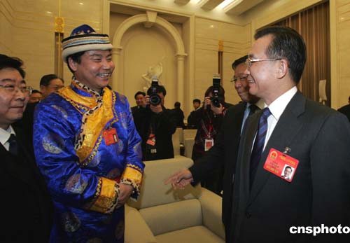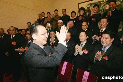 圖:溫家寶與甘肅代表一起審議政府工作報告
