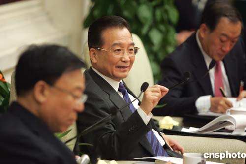 國務(wù)院總理溫家寶三月五日下午與出席十屆全國人大三次會議的甘肅代表一起審議政府工作報告。作者:毛建軍