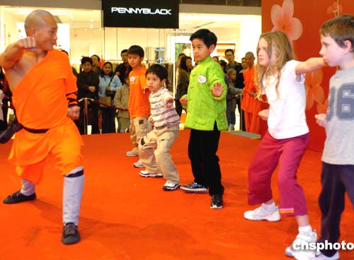 少林武術(shù)團(tuán)日前來香港表演時,武教頭現(xiàn)場教練香港小朋友武功,以廣大中國傳統(tǒng)武術(shù),增進(jìn)兩地友情。作者:宋吉河