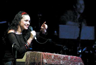 中新網(wǎng)3月8日電 據(jù)北京娛樂(lè)信報(bào)報(bào)道,昨(7日)晚,美國(guó)爵士樂(lè)小天后諾拉·瓊斯在工人體育館舉行了她在北京的首場(chǎng)個(gè)人演唱會(huì)。