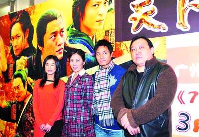 中新網(wǎng)3月9日電 據(jù)信息時報報道,《小魚兒與花無缺》在香港的播出尚在糾紛當(dāng)中,王晶昨(8)日已經(jīng)忙于來廣州參加他導(dǎo)演的另一部古裝武俠劇集《天下第一》的首播儀式。這次廣州之行,除了王晶還有郭晉安、葉璇和黃圣依。由于這部劇集囊括了不少當(dāng)紅藝人,包括因“鵬菲戀”成為內(nèi)地頭條人物的李亞鵬,香港藝人劉松仁、張衛(wèi)健、郭晉安、陳法蓉、葉璇以及臺灣地區(qū)藝人霍建華、陳怡蓉等“腕”級人物超過十余名,陣容已經(jīng)有足夠的震撼力,所以到場宣傳的藝人表現(xiàn)得并不積極。