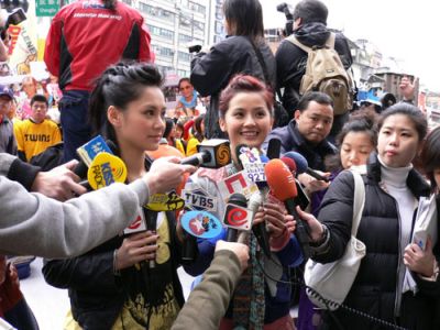現(xiàn)場聚集了逾千Fans,雖然之前已經(jīng)作出申請(qǐng),但由于人潮眾多,亦引起管區(qū)警員的關(guān)注,不過Fans都不畏寒風(fēng),舉起各式各樣搖牌來支持心目中的偶像。“阿嬌”眼見現(xiàn)場歌迷那么支持她們,十分感動(dòng),更因而落淚。另外,媒體非常關(guān)心“阿Sa”的病情,“阿Sa”說:“對(duì)于之前因病取消了通告,我感到非常的抱歉,往后會(huì)盡量令自己不會(huì)過于緊張及壓力過大!敝劣谀X部給撞倒后的情況,“阿Sa”指后腦仍有一點(diǎn)瘀青,但現(xiàn)在已無大礙。