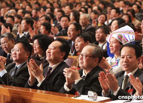 圖:代表鼓掌祝賀反分裂國家法高票通過
