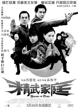 中新網(wǎng)3月15日電 據(jù)北京娛樂信報(bào)報(bào)道,2005年以來,首部港產(chǎn)引進(jìn)內(nèi)地的動作大片《精武家庭》將在本月24日全面出擊內(nèi)地市場,這部電影不僅匯集了黃秋生、馮德倫、吳彥祖、TWINS、王敏德、何超儀等超強(qiáng)的明星陣容,而且還請來了動作大師袁和平出任動作導(dǎo)演。