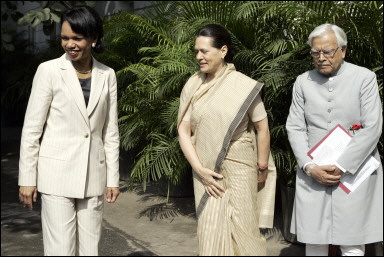 據(jù)鳳凰衛(wèi)視消息,賴斯在晚上飛抵新德里機(jī)場(chǎng),美國(guó)大使和印度官員都到場(chǎng)迎接。盡管對(duì)最近朝核問(wèn)題和臺(tái)海局勢(shì)的發(fā)展存在關(guān)切,賴斯說(shuō),美國(guó)與此次受訪各國(guó)的關(guān)系正處于歷史最好的時(shí)期。