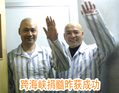 生命的希望從海峽傳來了。二00四年八月,在劉忠祥等志愿者和徐州市相關(guān)部門的努力下,遠(yuǎn)在臺(tái)灣花蓮市的世界最大的華人骨髓資料庫——臺(tái)灣慈濟(jì)骨髓干細(xì)胞中心在對(duì)骨髓庫進(jìn)行檢索后找到了與張猛、李懷剛基因相符的配型。經(jīng)過兩岸工作人員最細(xì)致的篩選,兩名年齡分別為二十二歲和三十三歲的臺(tái)灣女青年被確定為最終的配對(duì)者。張猛和李懷剛的生命重燃希望。