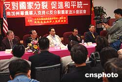 美國(guó)洛杉磯華人政治評(píng)論家與當(dāng)?shù)貎S胞僑領(lǐng),三月十九日云集中國(guó)城參加座談會(huì),異口同聲支持中國(guó)通過(guò)實(shí)施《反分裂國(guó)家法》。作者:賈國(guó)榮