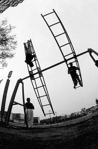 體能訓練近乎殘酷。在最初的一個半月的封閉訓練中,她們沒有一天的休整機會,練隊列、拉單杠、撐雙杠、轉(zhuǎn)旋梯、繞滾輪、跑3000米……每天都是超負荷訓練。按過去的慣例,這段日子,她們每人平均磨壞3雙運動鞋。隨后是跳傘訓練,這種訓練既學習飛行員自救的方式,也錘煉心理承受能力和頑強的戰(zhàn)斗精神。每天,女學員都要在兩米高的跳臺上爬上、爬下數(shù)百次。