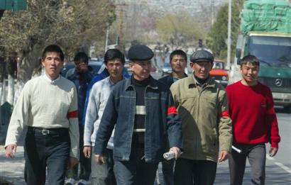 中新網(wǎng)3月23日電 據(jù)美聯(lián)社報(bào)道,吉爾吉斯斯坦反對(duì)派代表3月22日在吉爾吉斯斯坦第二大城市奧什市的一條街道中巡邏。