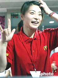 麥當勞中國有限公司三月二十三日在北京舉行“均衡生活方式”宣傳活動,麥當勞形象代言人、奧運冠軍郭晶晶參加活動。作者:錢興強