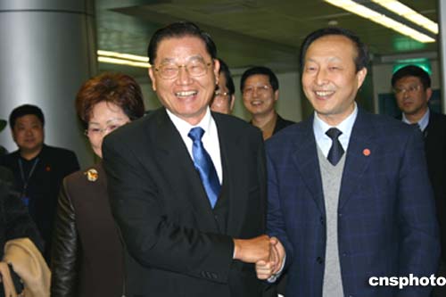 國民黨副主席江丙坤一行乘坐的CZ三五○七航班今天下午十六點二十八分抵達(dá)南京祿口國際機(jī)場,受到江蘇有關(guān)方面及在蘇臺商的熱烈歡迎。這是該參訪團(tuán)赴大陸“緬懷之旅、經(jīng)貿(mào)之旅”的第二站。江丙坤一行抵達(dá)南京祿口國際機(jī)場,江蘇省臺辦主任陳堯等在機(jī)場歡迎。作者:陳旻