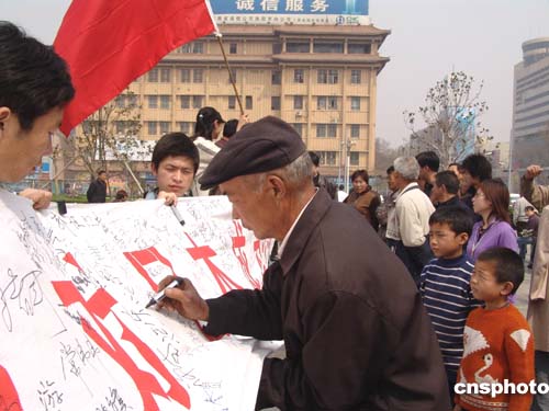 圖:洛陽(yáng)街頭數(shù)千人簽名反對(duì)日本成為常任理事國(guó)