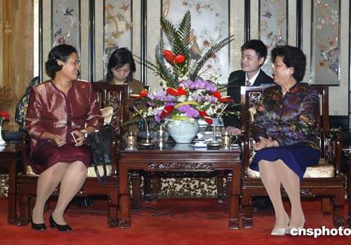 四月三日晚,國務委員陳至立在北京會見了來訪的泰國公主詩琳通。作者:廖文靜