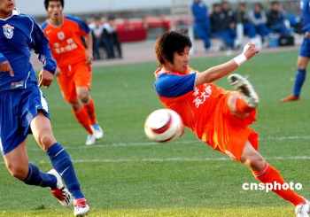二00五中國中超足球聯(lián)賽揭幕戰(zhàn)四月二日下午在山東省體育中心體育場進(jìn)行,由山東魯能泰山隊主場迎戰(zhàn)上海永大隊。經(jīng)過九十分鐘的比賽,山東魯能泰山隊?wèi){借李金羽補(bǔ)時階段的入球二比一力克上海永大隊,取得二00五中超足球聯(lián)賽的首場勝利。射進(jìn)獲勝一球的泰山隊李金羽在比賽中表現(xiàn)神勇。作者:宋衛(wèi)東