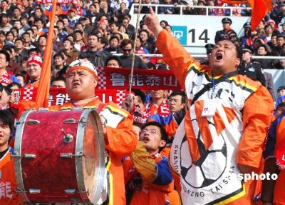 二00五中國中超足球聯(lián)賽揭幕戰(zhàn)四月二日下午在山東省體育中心體育場進行,由山東魯能泰山隊主場迎戰(zhàn)上海永大隊。經(jīng)過九十分鐘的比賽,山東魯能泰山隊?wèi){借李金羽補時階段的入球二比一力克上海永大隊,取得二00五中超足球聯(lián)賽的首場勝利。在泰山隊主場觀看中超足球聯(lián)賽揭幕戰(zhàn)的球迷達四萬多人。作者:宋衛(wèi)東